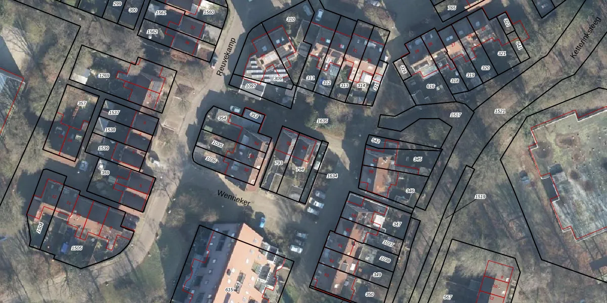 Het perceel waarop Wenneker 56 staat heeft een oppervlakte van 173 m². Dit is een middelgroot perceel. De perceeloppervlakte wordt geregistreerd door het Kadaster. Gedetailleerde informatie over de maten van dit perceel kunt u vinden in het rapport Kadastrale kaart met maatvoering van Wenneker 56.