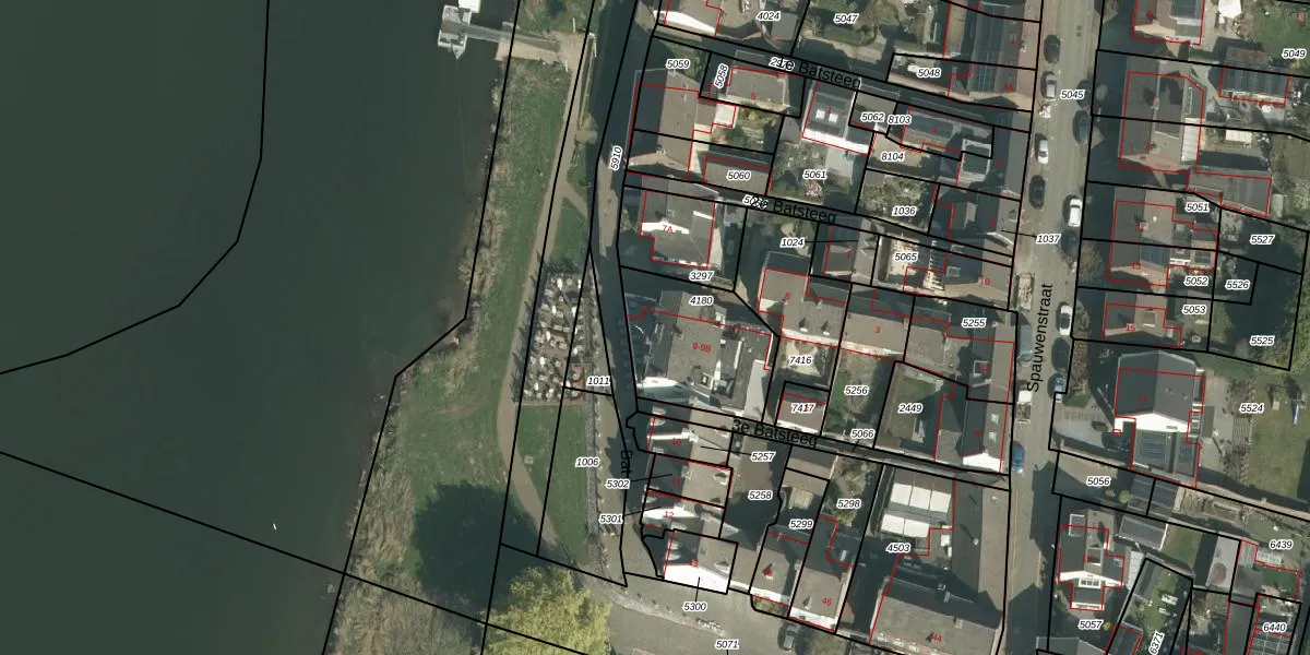 Het perceel waarop Bat 9 staat heeft een oppervlakte van 385 m². Dit is een groot perceel. De perceeloppervlakte wordt geregistreerd door het Kadaster. Gedetailleerde informatie over de maten van dit perceel kunt u vinden in het rapport Kadastrale kaart met maatvoering van Bat 9.