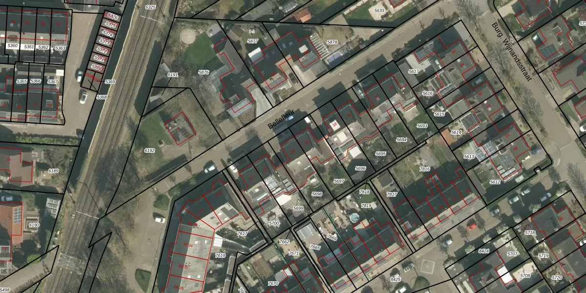 Gebruik de zoekbalk of klik op een perceel voor informatie over de adressen binnen dit perceel.