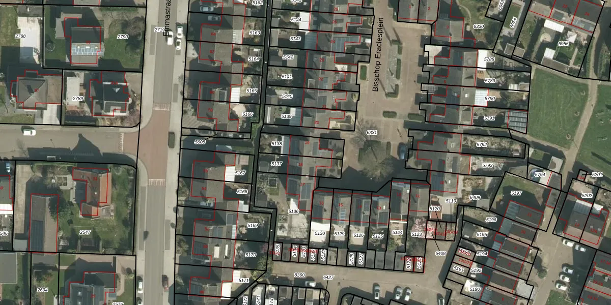 Het perceel waarop Bisschop Eraclesplein 19 staat heeft een oppervlakte van 178 m². Dit is een middelgroot perceel. De perceeloppervlakte wordt geregistreerd door het Kadaster. Gedetailleerde informatie over de maten van dit perceel kunt u vinden in het rapport Kadastrale kaart met maatvoering van Bisschop Eraclesplein 19.