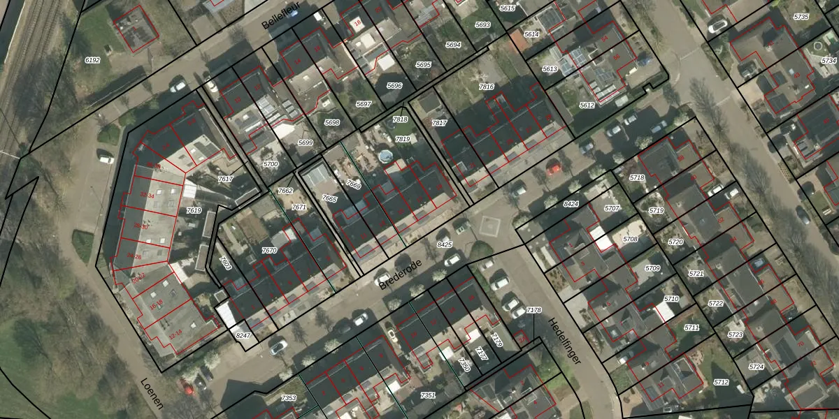Het perceel waarop Brederode 17 staat heeft een oppervlakte van 518 m². Dit is een groot perceel. De perceeloppervlakte wordt geregistreerd door het Kadaster. Gedetailleerde informatie over de maten van dit perceel kunt u vinden in het rapport Kadastrale kaart met maatvoering van Brederode 17.