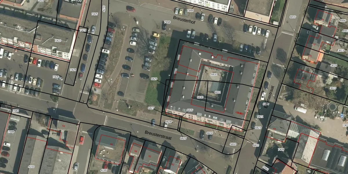 Het perceel waarop Breusterhof 44 staat heeft een oppervlakte van 701 m². Dit is een groot perceel. De perceeloppervlakte wordt geregistreerd door het Kadaster. Gedetailleerde informatie over de maten van dit perceel kunt u vinden in het rapport Kadastrale kaart met maatvoering van Breusterhof 44.