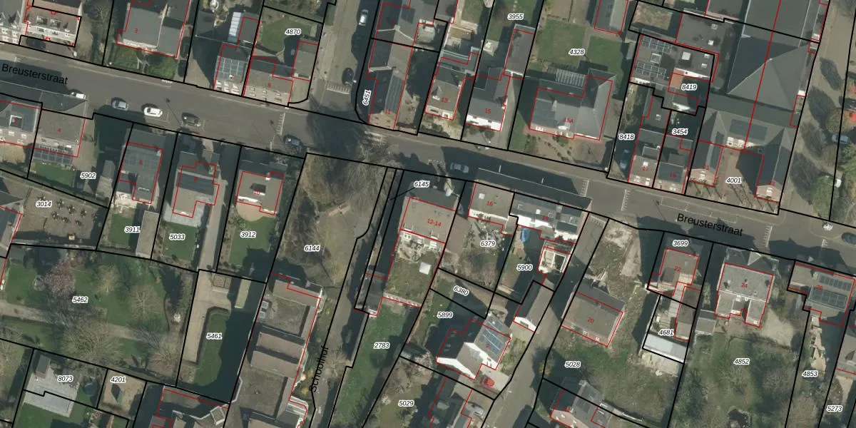 Breusterstraat 12 is gelegen op kadastraal perceel EDN00D2783. Deze kadastrale aanduiding is uniek en wordt gebruikt door het Kadaster om eigendomsrechten en andere zakelijke rechten vast te leggen. Het perceel maakt onderdeel uit van de kadastrale gemeente Eijsden.