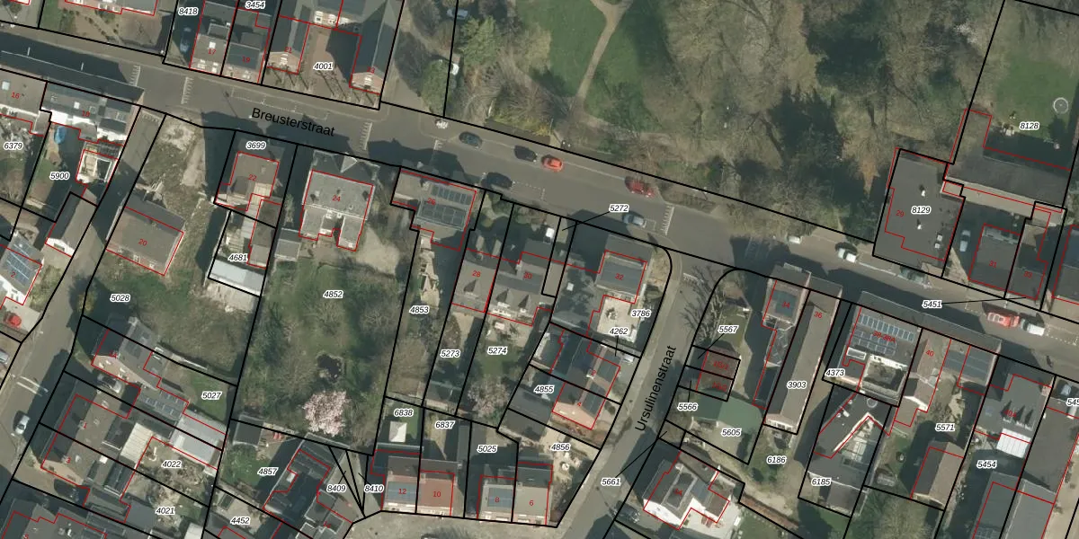 Breusterstraat 30 is gelegen op kadastraal perceel EDN00D5274. Deze kadastrale aanduiding is uniek en wordt gebruikt door het Kadaster om eigendomsrechten en andere zakelijke rechten vast te leggen. Het perceel maakt onderdeel uit van de kadastrale gemeente Eijsden.