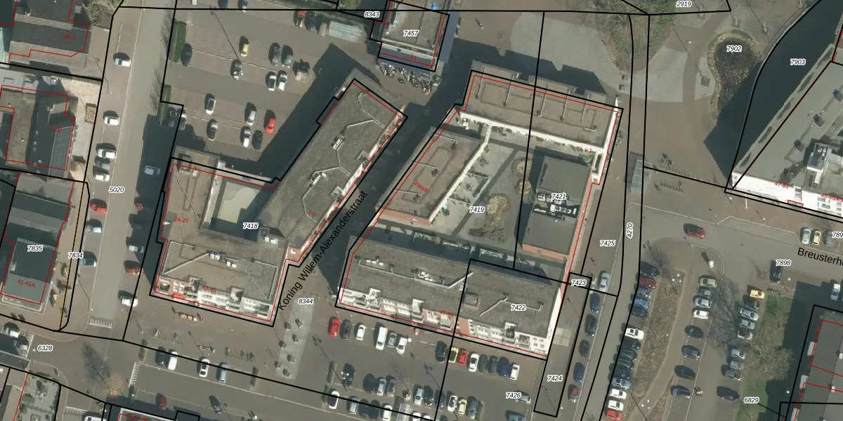 Het perceel waarop Breusterstraat 59 staat heeft een oppervlakte van 1628 m². Dit is een zeer groot perceel. De perceeloppervlakte wordt geregistreerd door het Kadaster. Gedetailleerde informatie over de maten van dit perceel kunt u vinden in het rapport Kadastrale kaart met maatvoering van Breusterstraat 59.