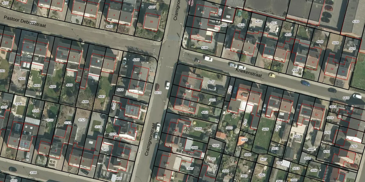 Gebruik de zoekbalk of klik op een perceel voor informatie over de adressen binnen dit perceel.