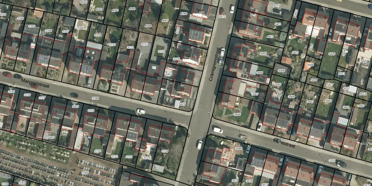 Het perceel waarop Cramignonstraat 22 staat heeft een oppervlakte van 279 m². Dit is een middelgroot perceel. De perceeloppervlakte wordt geregistreerd door het Kadaster. Gedetailleerde informatie over de maten van dit perceel kunt u vinden in het rapport Kadastrale kaart met maatvoering van Cramignonstraat 22.
