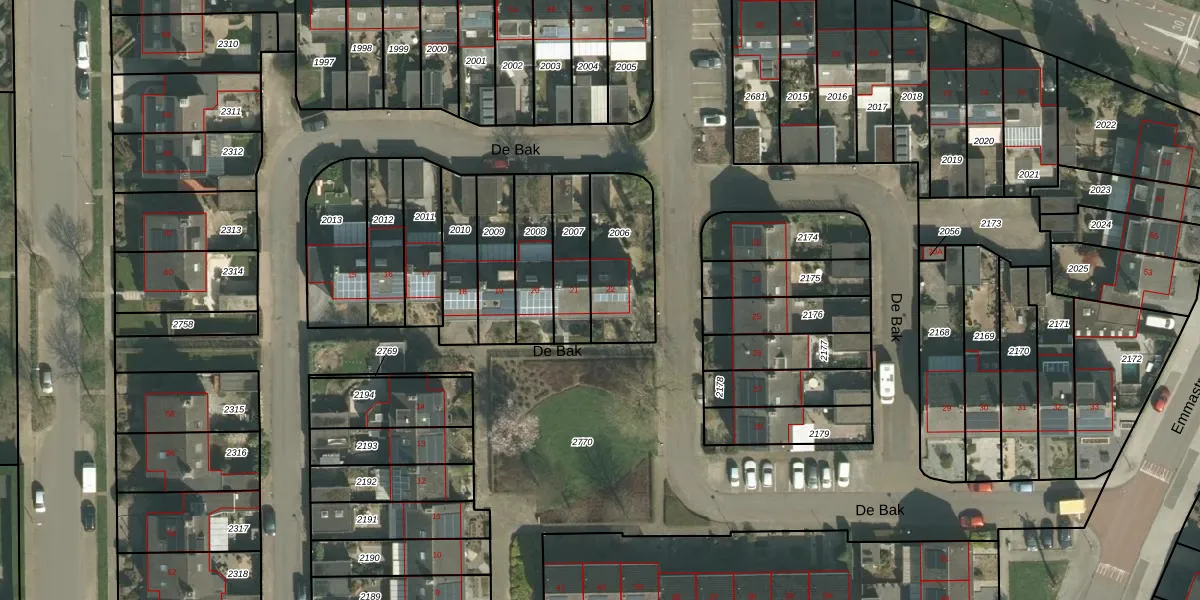 Het perceel waarop De Bak 22 staat heeft een oppervlakte van 295 m². Dit is een middelgroot perceel. De perceeloppervlakte wordt geregistreerd door het Kadaster. Gedetailleerde informatie over de maten van dit perceel kunt u vinden in het rapport Kadastrale kaart met maatvoering van De Bak 22.