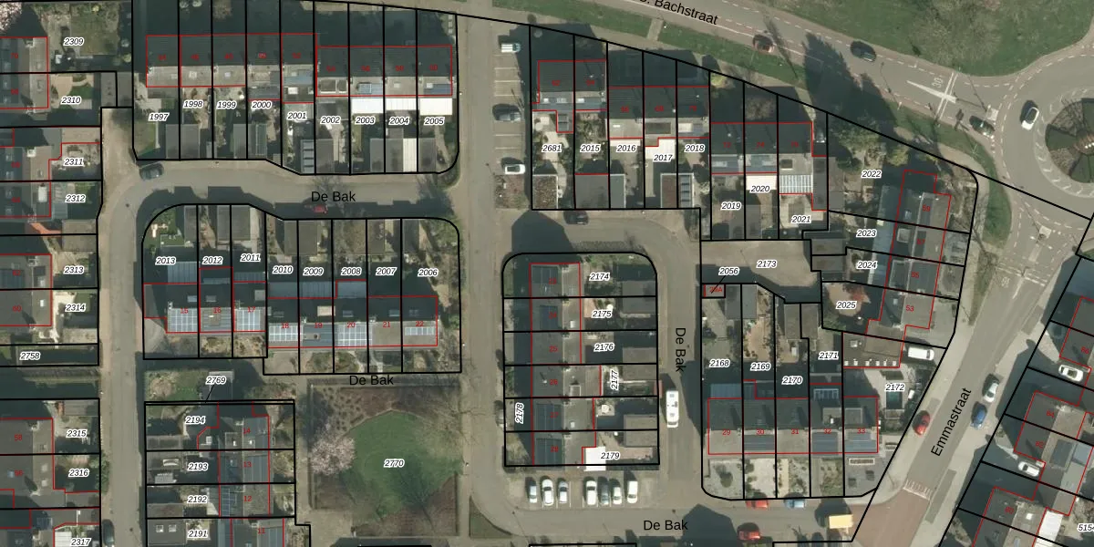 Het perceel waarop De Bak 23 staat heeft een oppervlakte van 215 m². Dit is een middelgroot perceel. De perceeloppervlakte wordt geregistreerd door het Kadaster. Gedetailleerde informatie over de maten van dit perceel kunt u vinden in het rapport Kadastrale kaart met maatvoering van De Bak 23.