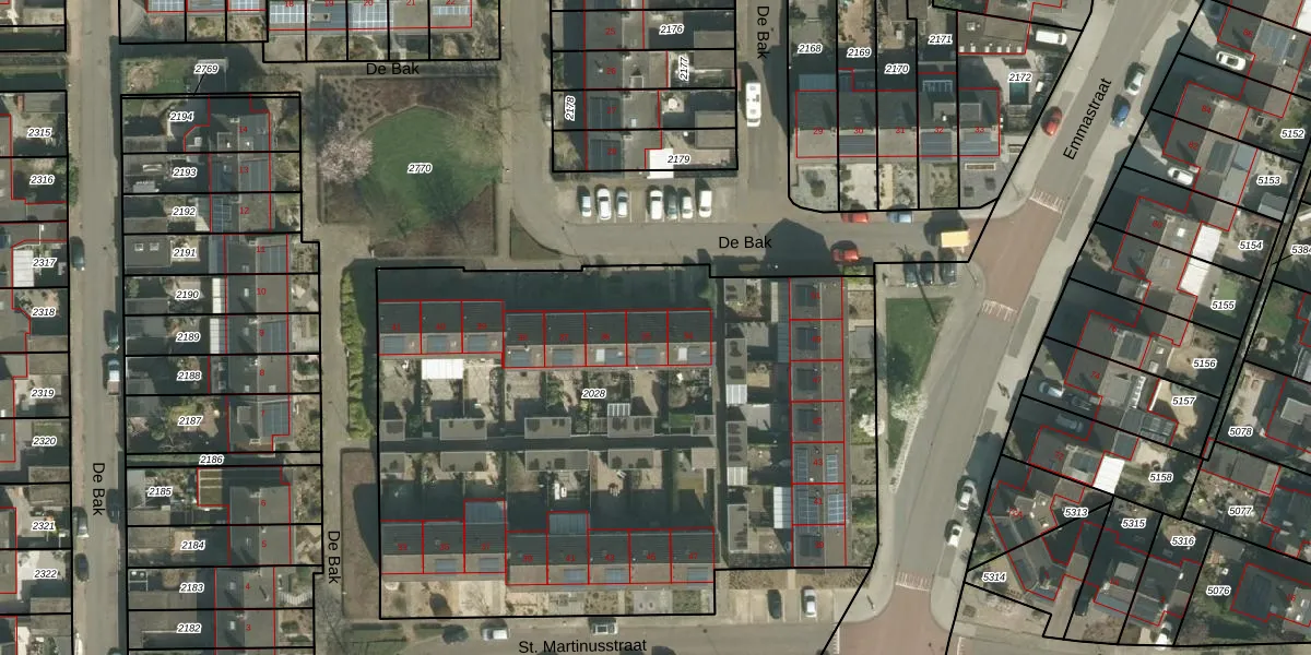 Het perceel waarop De Bak 35 staat heeft een oppervlakte van 3827 m². Dit is een zeer groot perceel. De perceeloppervlakte wordt geregistreerd door het Kadaster. Gedetailleerde informatie over de maten van dit perceel kunt u vinden in het rapport Kadastrale kaart met maatvoering van De Bak 35.