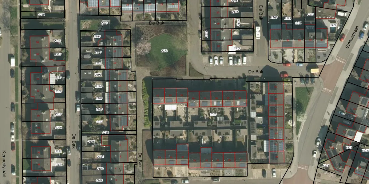 De Bak 39 is gelegen op kadastraal perceel EDN00B2028. Deze kadastrale aanduiding is uniek en wordt gebruikt door het Kadaster om eigendomsrechten en andere zakelijke rechten vast te leggen. Het perceel maakt onderdeel uit van de kadastrale gemeente Eijsden.