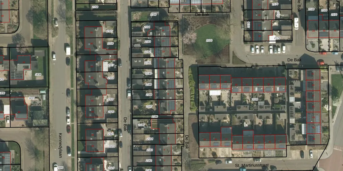 Het perceel waarop De Bak 9 staat heeft een oppervlakte van 184 m². Dit is een middelgroot perceel. De perceeloppervlakte wordt geregistreerd door het Kadaster. Gedetailleerde informatie over de maten van dit perceel kunt u vinden in het rapport Kadastrale kaart met maatvoering van De Bak 9.