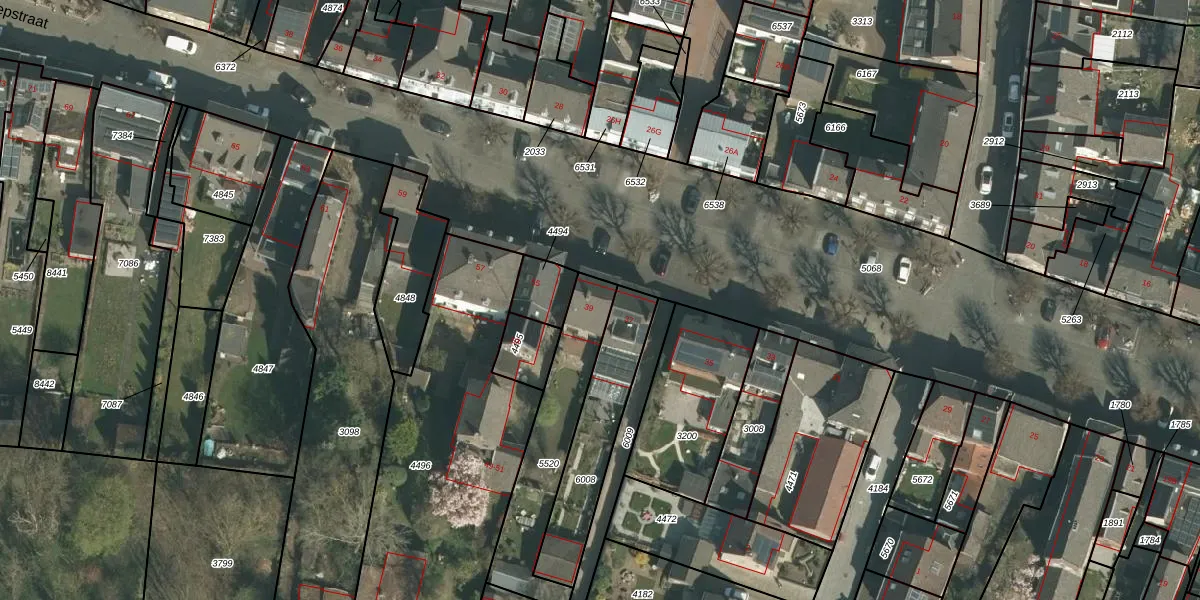 Gebruik de zoekbalk of klik op een perceel voor informatie over de adressen binnen dit perceel.