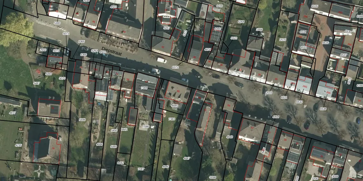 Het perceel waarop Diepstraat 65 staat heeft een oppervlakte van 260 m². Dit is een middelgroot perceel. De perceeloppervlakte wordt geregistreerd door het Kadaster. Gedetailleerde informatie over de maten van dit perceel kunt u vinden in het rapport Kadastrale kaart met maatvoering van Diepstraat 65.