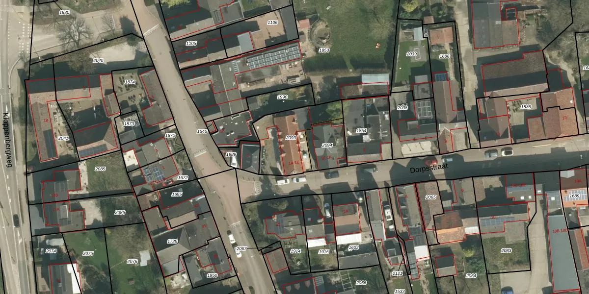 Dorpsstraat 1-E is gelegen op kadastraal perceel EDN00A2093. Deze kadastrale aanduiding is uniek en wordt gebruikt door het Kadaster om eigendomsrechten en andere zakelijke rechten vast te leggen. Het perceel maakt onderdeel uit van de kadastrale gemeente Eijsden.