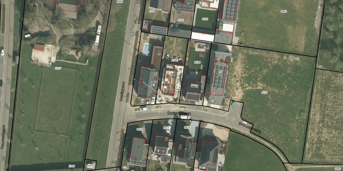 Dotterbloem 14 is gelegen op kadastraal perceel EDN00D8188. Deze kadastrale aanduiding is uniek en wordt gebruikt door het Kadaster om eigendomsrechten en andere zakelijke rechten vast te leggen. Het perceel maakt onderdeel uit van de kadastrale gemeente Eijsden.