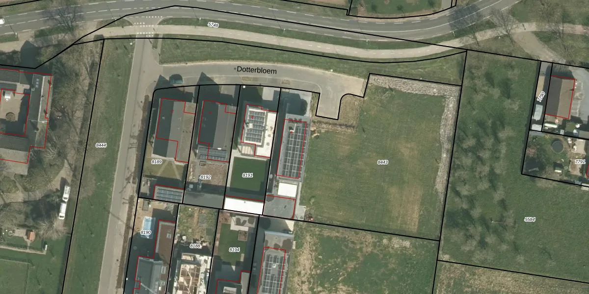 Dotterbloem 8 is gelegen op kadastraal perceel EDN00D8443. Deze kadastrale aanduiding is uniek en wordt gebruikt door het Kadaster om eigendomsrechten en andere zakelijke rechten vast te leggen. Het perceel maakt onderdeel uit van de kadastrale gemeente Eijsden.
