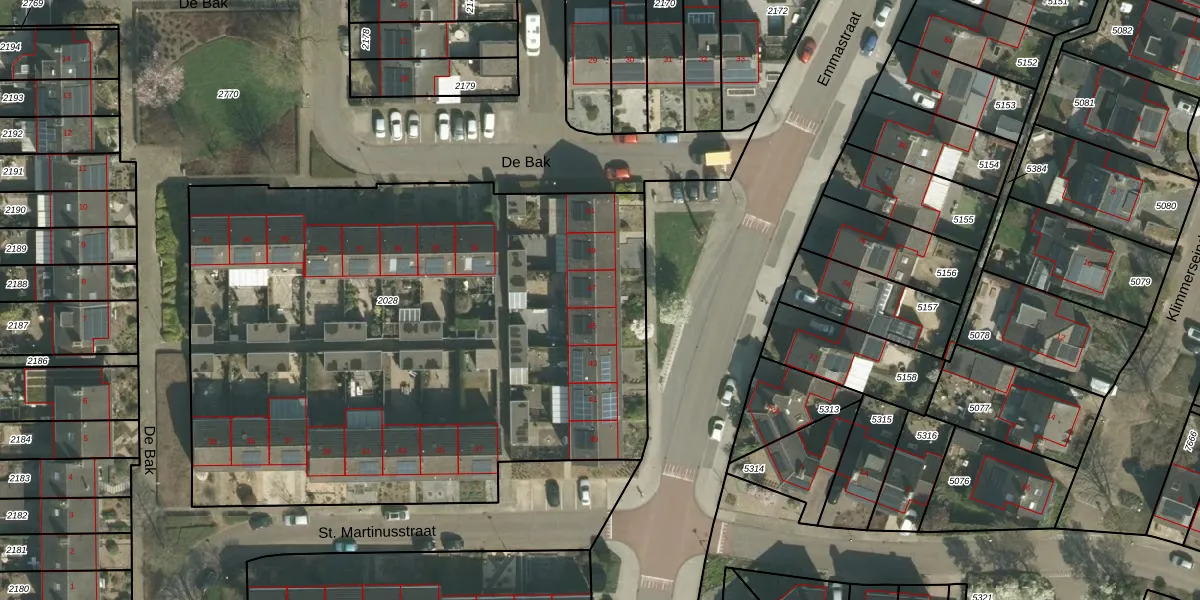 Het perceel waarop Emmastraat 47 staat heeft een oppervlakte van 3827 m². Dit is een zeer groot perceel. De perceeloppervlakte wordt geregistreerd door het Kadaster. Gedetailleerde informatie over de maten van dit perceel kunt u vinden in het rapport Kadastrale kaart met maatvoering van Emmastraat 47.