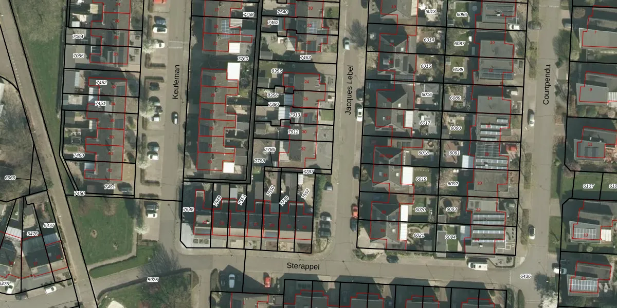Het perceel waarop Jacques Lebel 32 staat heeft een oppervlakte van 375 m². Dit is een groot perceel. De perceeloppervlakte wordt geregistreerd door het Kadaster. Gedetailleerde informatie over de maten van dit perceel kunt u vinden in het rapport Kadastrale kaart met maatvoering van Jacques Lebel 32.