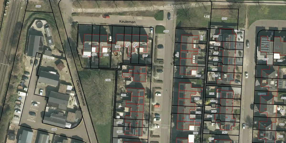 Het perceel waarop Keuleman 16 staat heeft een oppervlakte van 890 m². Dit is een groot perceel. De perceeloppervlakte wordt geregistreerd door het Kadaster. Gedetailleerde informatie over de maten van dit perceel kunt u vinden in het rapport Kadastrale kaart met maatvoering van Keuleman 16.