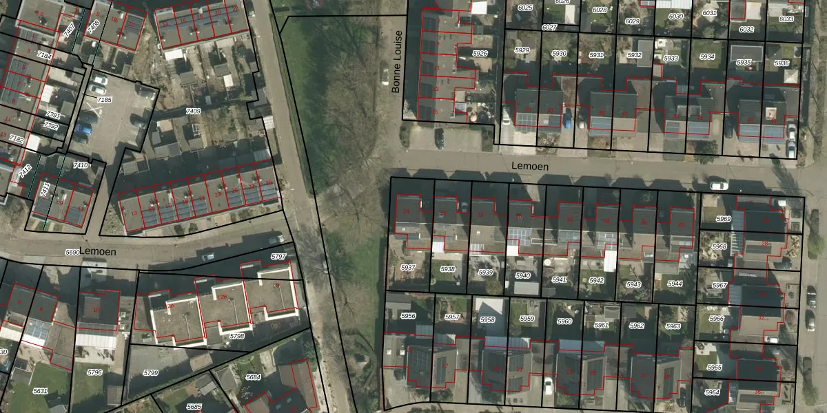 Gebruik de zoekbalk of klik op een perceel voor informatie over de adressen binnen dit perceel.