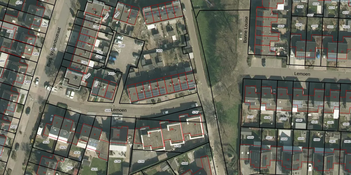 Het perceel waarop Lemoen 25 staat heeft een oppervlakte van 2103 m². Dit is een zeer groot perceel. De perceeloppervlakte wordt geregistreerd door het Kadaster. Gedetailleerde informatie over de maten van dit perceel kunt u vinden in het rapport Kadastrale kaart met maatvoering van Lemoen 25.
