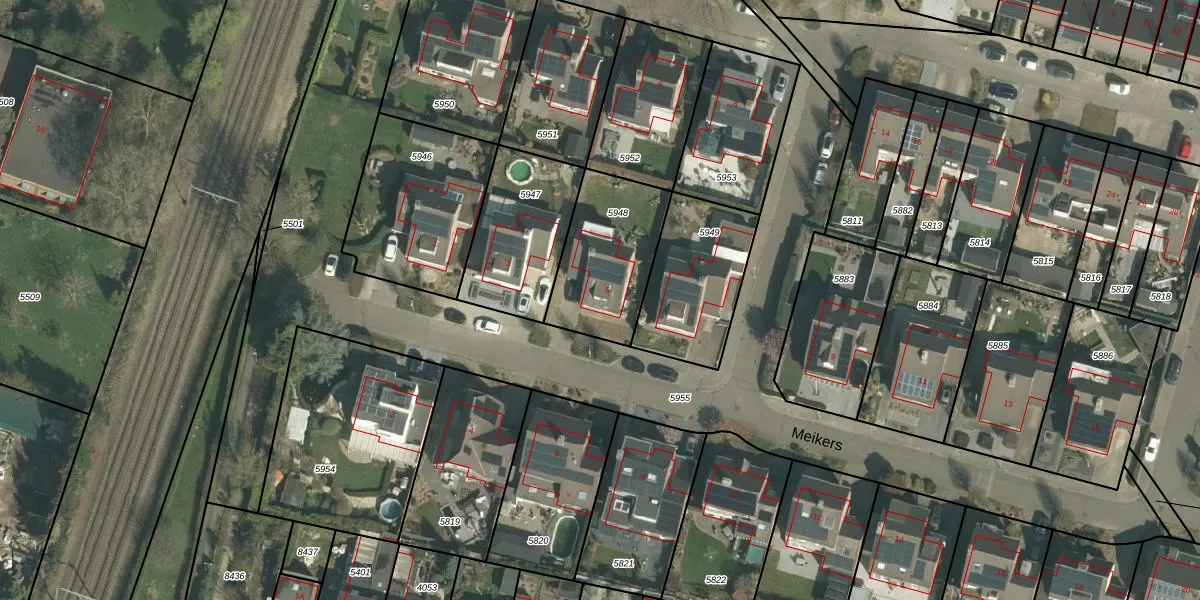 Het perceel waarop Meikers 5 staat heeft een oppervlakte van 402 m². Dit is een groot perceel. De perceeloppervlakte wordt geregistreerd door het Kadaster. Gedetailleerde informatie over de maten van dit perceel kunt u vinden in het rapport Kadastrale kaart met maatvoering van Meikers 5.