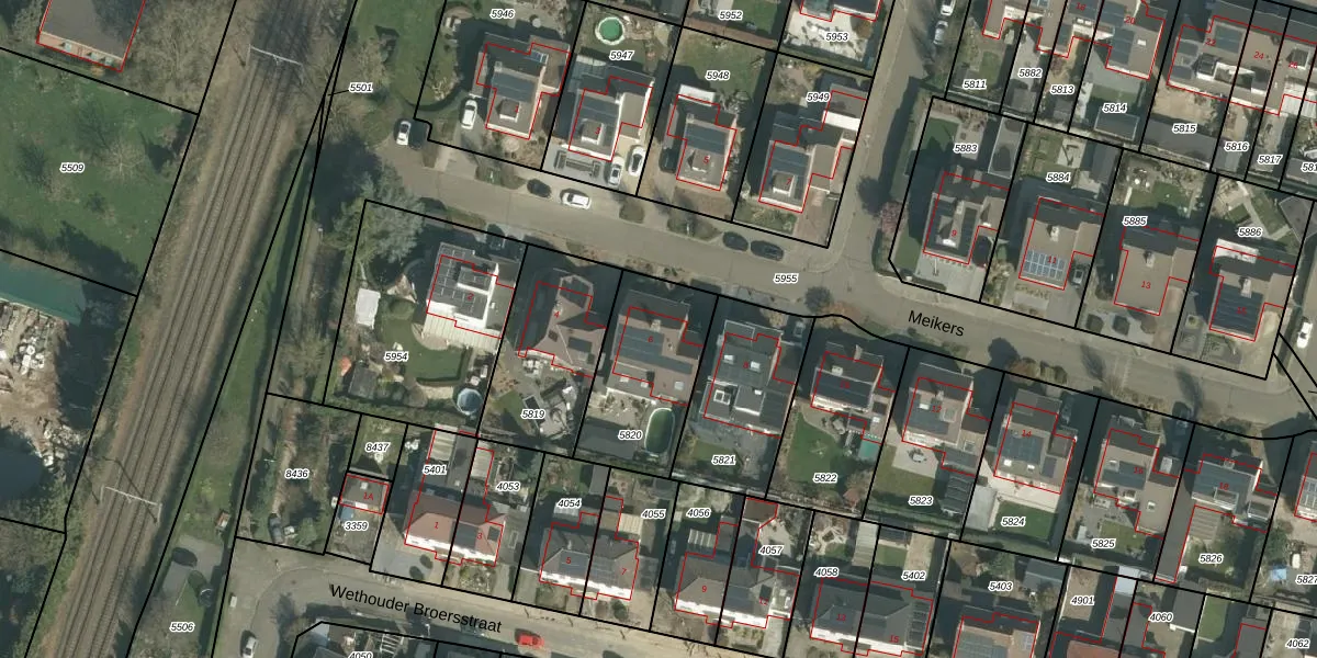 Het perceel waarop Meikers 6 staat heeft een oppervlakte van 441 m². Dit is een groot perceel. De perceeloppervlakte wordt geregistreerd door het Kadaster. Gedetailleerde informatie over de maten van dit perceel kunt u vinden in het rapport Kadastrale kaart met maatvoering van Meikers 6.