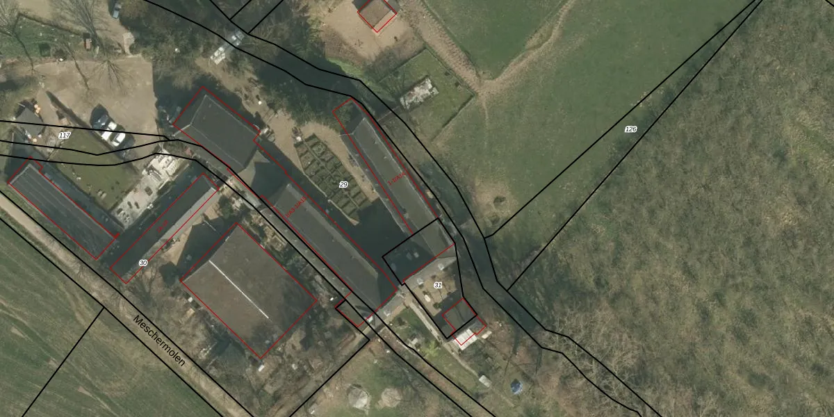 Het perceel waarop Meschermolen 1-A5 staat heeft een oppervlakte van 8059 m². Dit is een zeer groot perceel. De perceeloppervlakte wordt geregistreerd door het Kadaster. Gedetailleerde informatie over de maten van dit perceel kunt u vinden in het rapport Kadastrale kaart met maatvoering van Meschermolen 1-A5.