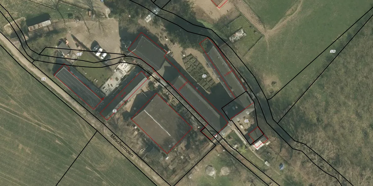 Het perceel waarop Meschermolen 1-A8 staat heeft een oppervlakte van 8059 m². Dit is een zeer groot perceel. De perceeloppervlakte wordt geregistreerd door het Kadaster. Gedetailleerde informatie over de maten van dit perceel kunt u vinden in het rapport Kadastrale kaart met maatvoering van Meschermolen 1-A8.