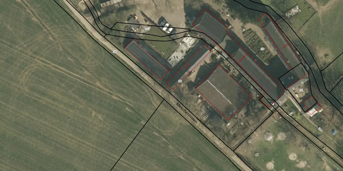 Het perceel waarop Meschermolen 1-F staat heeft een oppervlakte van 2865 m². Dit is een zeer groot perceel. De perceeloppervlakte wordt geregistreerd door het Kadaster. Gedetailleerde informatie over de maten van dit perceel kunt u vinden in het rapport Kadastrale kaart met maatvoering van Meschermolen 1-F.