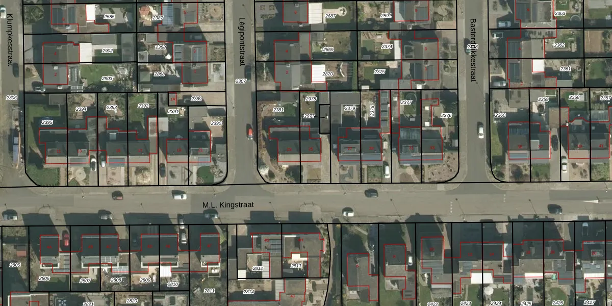 Het perceel waarop M.L. Kingstraat 25 staat heeft een oppervlakte van 270 m². Dit is een middelgroot perceel. De perceeloppervlakte wordt geregistreerd door het Kadaster. Gedetailleerde informatie over de maten van dit perceel kunt u vinden in het rapport Kadastrale kaart met maatvoering van M.L. Kingstraat 25.