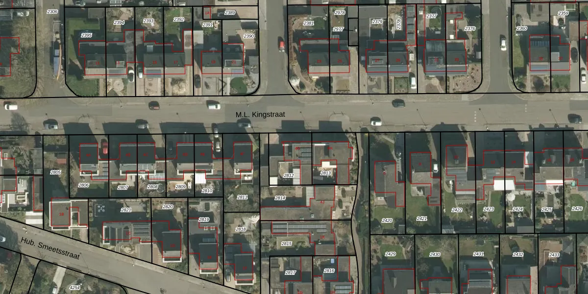 Het perceel waarop M.L. Kingstraat 4-G staat heeft een oppervlakte van 261 m². Dit is een middelgroot perceel. De perceeloppervlakte wordt geregistreerd door het Kadaster. Gedetailleerde informatie over de maten van dit perceel kunt u vinden in het rapport Kadastrale kaart met maatvoering van M.L. Kingstraat 4-G.