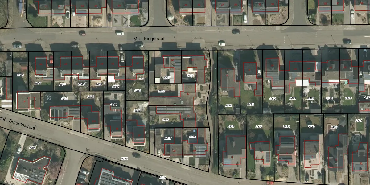 Gebruik de zoekbalk of klik op een perceel voor informatie over de adressen binnen dit perceel.