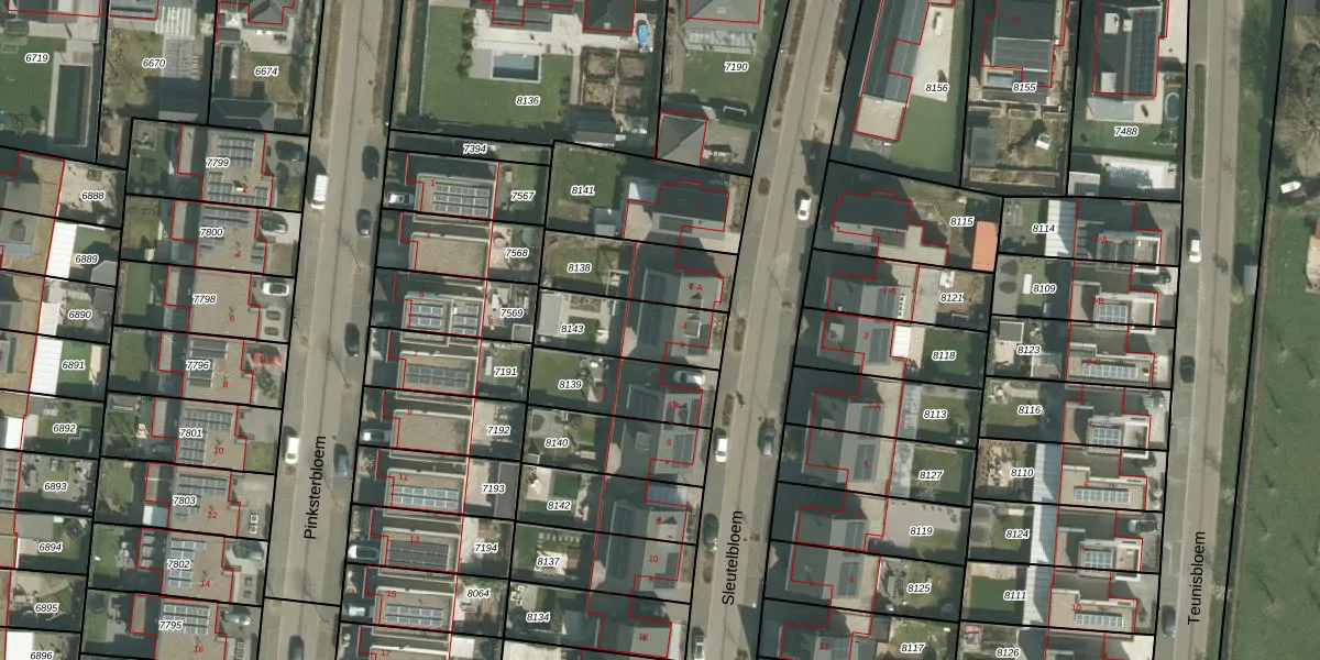 Gebruik de zoekbalk of klik op een perceel voor informatie over de adressen binnen dit perceel.