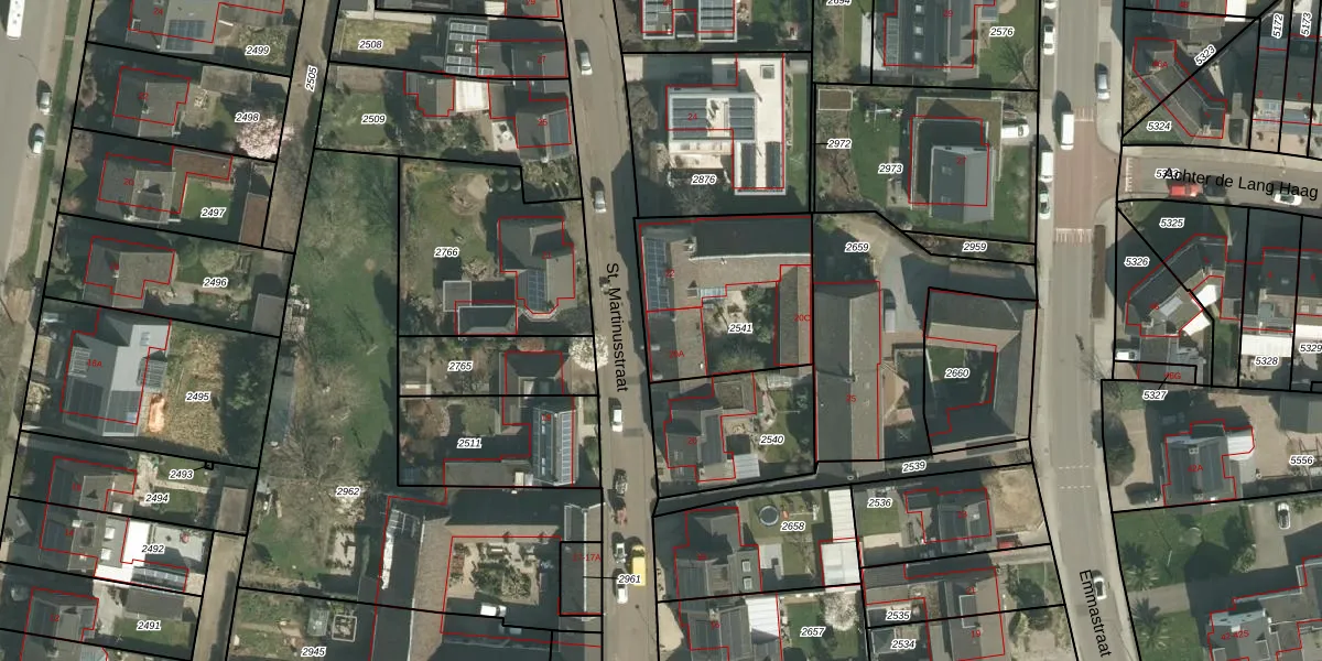St. Martinusstraat 20-A is gelegen op kadastraal perceel EDN00B2541. Deze kadastrale aanduiding is uniek en wordt gebruikt door het Kadaster om eigendomsrechten en andere zakelijke rechten vast te leggen. Het perceel maakt onderdeel uit van de kadastrale gemeente Eijsden.