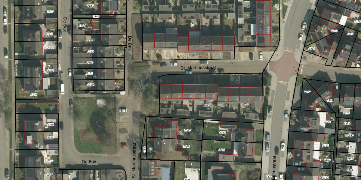 Het perceel waarop St. Martinusstraat 36 staat heeft een oppervlakte van 1470 m². Dit is een zeer groot perceel. De perceeloppervlakte wordt geregistreerd door het Kadaster. Gedetailleerde informatie over de maten van dit perceel kunt u vinden in het rapport Kadastrale kaart met maatvoering van St. Martinusstraat 36.