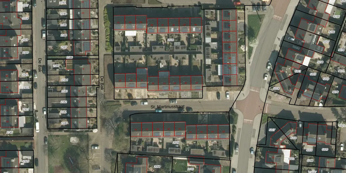 Het perceel waarop St. Martinusstraat 43 staat heeft een oppervlakte van 3827 m². Dit is een zeer groot perceel. De perceeloppervlakte wordt geregistreerd door het Kadaster. Gedetailleerde informatie over de maten van dit perceel kunt u vinden in het rapport Kadastrale kaart met maatvoering van St. Martinusstraat 43.
