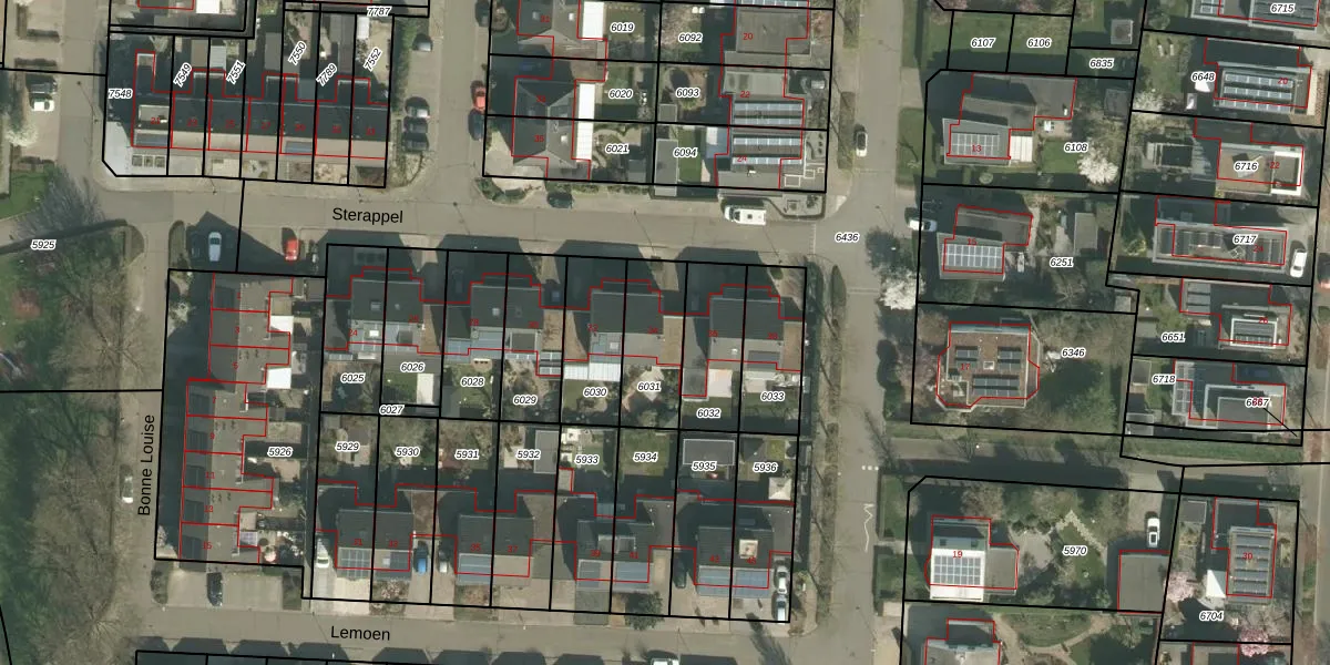 Het perceel waarop Sterappel 34 staat heeft een oppervlakte van 228 m². Dit is een middelgroot perceel. De perceeloppervlakte wordt geregistreerd door het Kadaster. Gedetailleerde informatie over de maten van dit perceel kunt u vinden in het rapport Kadastrale kaart met maatvoering van Sterappel 34.