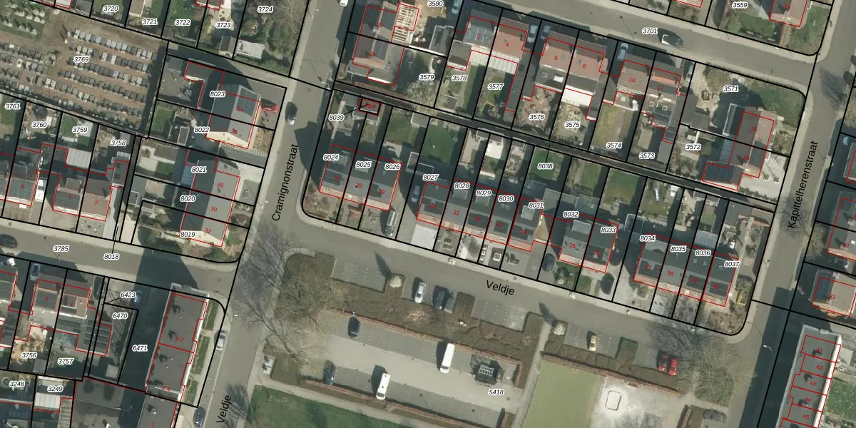 Het perceel waarop Veldje 30 staat heeft een oppervlakte van 274 m². Dit is een middelgroot perceel. De perceeloppervlakte wordt geregistreerd door het Kadaster. Gedetailleerde informatie over de maten van dit perceel kunt u vinden in het rapport Kadastrale kaart met maatvoering van Veldje 30.
