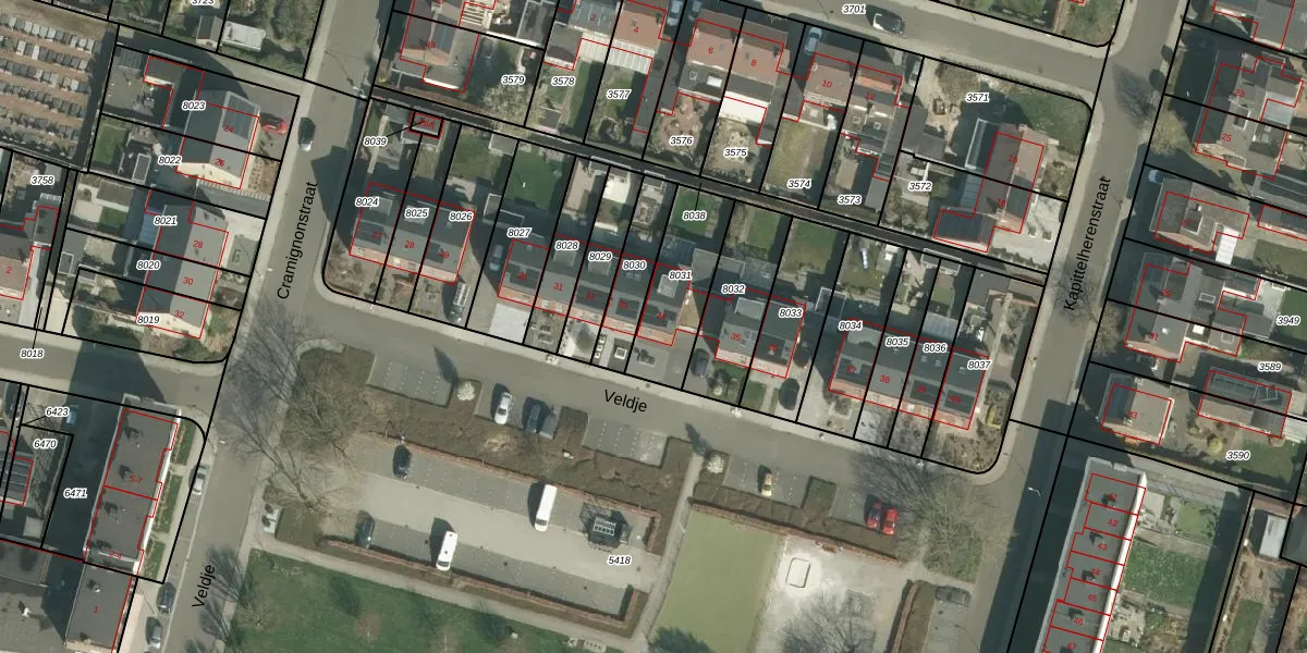 Het perceel waarop Veldje 34 staat heeft een oppervlakte van 275 m². Dit is een middelgroot perceel. De perceeloppervlakte wordt geregistreerd door het Kadaster. Gedetailleerde informatie over de maten van dit perceel kunt u vinden in het rapport Kadastrale kaart met maatvoering van Veldje 34.