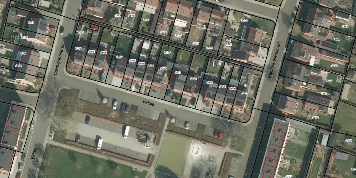 Het perceel waarop Veldje 35 staat heeft een oppervlakte van 275 m². Dit is een middelgroot perceel. De perceeloppervlakte wordt geregistreerd door het Kadaster. Gedetailleerde informatie over de maten van dit perceel kunt u vinden in het rapport Kadastrale kaart met maatvoering van Veldje 35.
