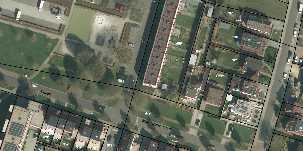 Veldje 54 is gelegen op kadastraal perceel EDN00D4127. Deze kadastrale aanduiding is uniek en wordt gebruikt door het Kadaster om eigendomsrechten en andere zakelijke rechten vast te leggen. Het perceel maakt onderdeel uit van de kadastrale gemeente Eijsden.