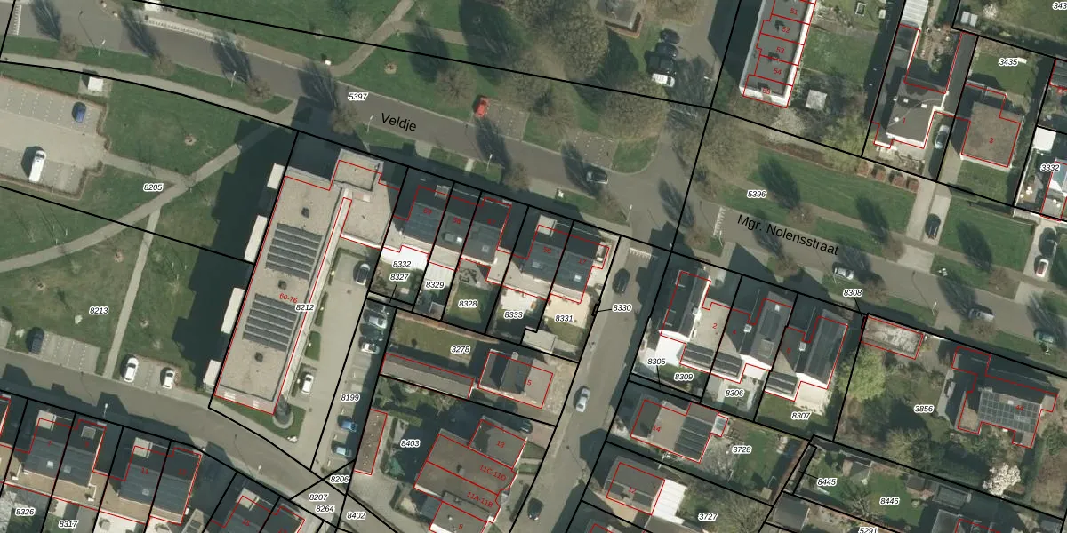 Veldje 56 is gelegen op kadastraal perceel EDN00D8333. Deze kadastrale aanduiding is uniek en wordt gebruikt door het Kadaster om eigendomsrechten en andere zakelijke rechten vast te leggen. Het perceel maakt onderdeel uit van de kadastrale gemeente Eijsden.