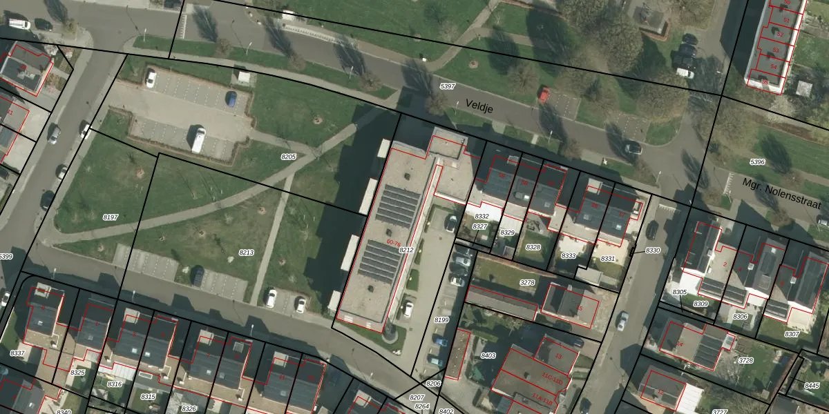 Veldje 60 is gelegen op kadastraal perceel EDN00D8212. Deze kadastrale aanduiding is uniek en wordt gebruikt door het Kadaster om eigendomsrechten en andere zakelijke rechten vast te leggen. Het perceel maakt onderdeel uit van de kadastrale gemeente Eijsden.