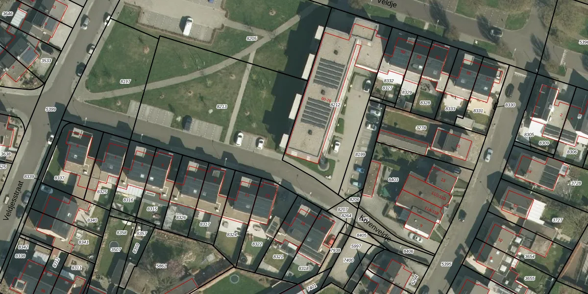 Veldje 76 is gelegen op kadastraal perceel EDN00D8212. Deze kadastrale aanduiding is uniek en wordt gebruikt door het Kadaster om eigendomsrechten en andere zakelijke rechten vast te leggen. Het perceel maakt onderdeel uit van de kadastrale gemeente Eijsden.