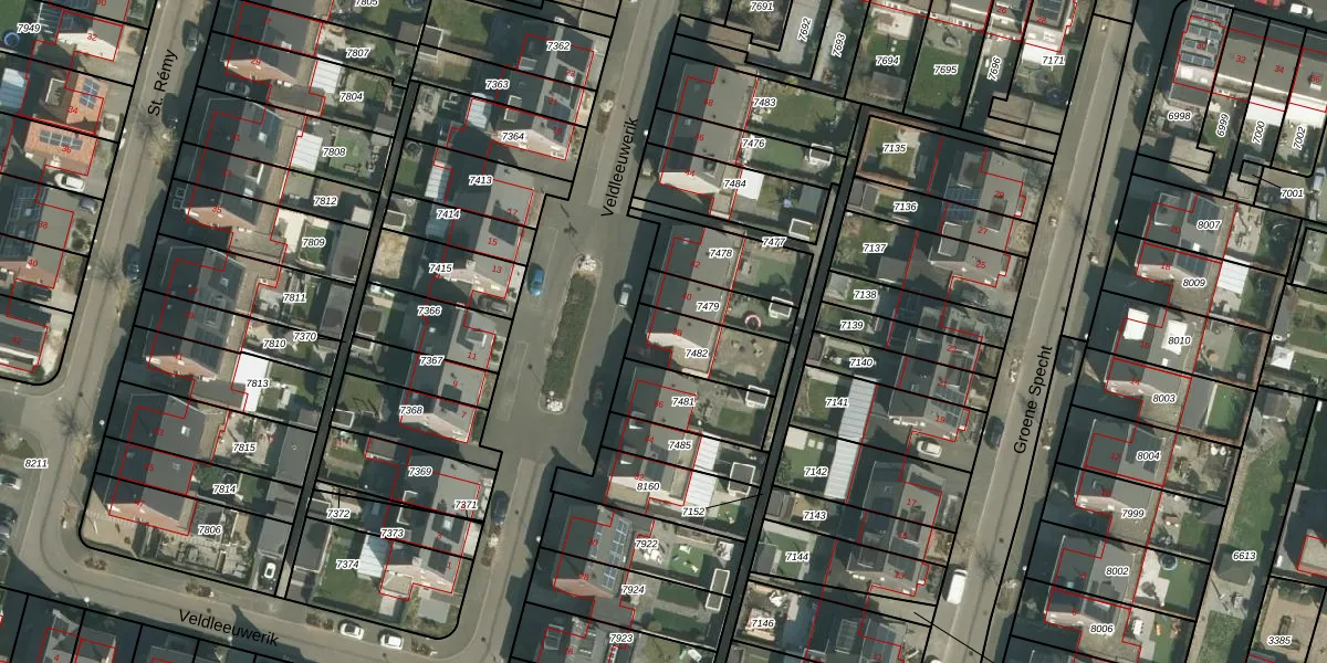 Het perceel waarop Veldleeuwerik 38 staat heeft een oppervlakte van 200 m². Dit is een middelgroot perceel. De perceeloppervlakte wordt geregistreerd door het Kadaster. Gedetailleerde informatie over de maten van dit perceel kunt u vinden in het rapport Kadastrale kaart met maatvoering van Veldleeuwerik 38.