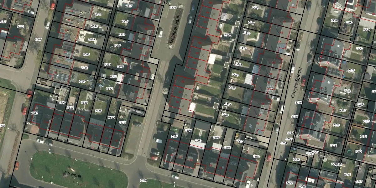 Het perceel waarop Veldleeuwerik 52 staat heeft een oppervlakte van 2460 m². Dit is een zeer groot perceel. De perceeloppervlakte wordt geregistreerd door het Kadaster. Gedetailleerde informatie over de maten van dit perceel kunt u vinden in het rapport Kadastrale kaart met maatvoering van Veldleeuwerik 52.