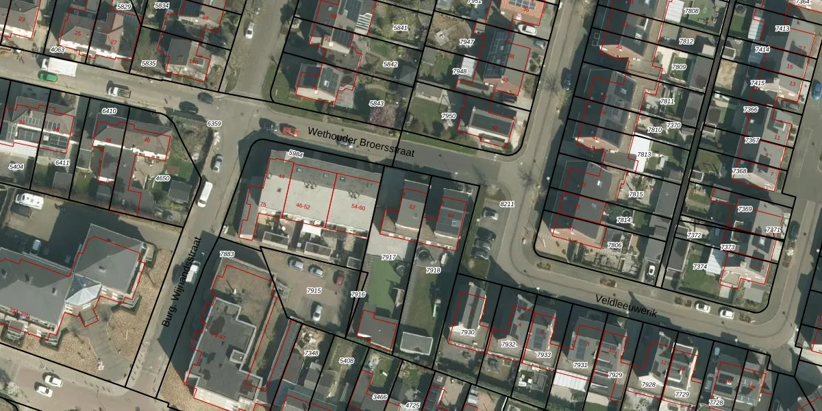 Wethouder Broersstraat 62 is gelegen op kadastraal perceel EDN00D7917. Deze kadastrale aanduiding is uniek en wordt gebruikt door het Kadaster om eigendomsrechten en andere zakelijke rechten vast te leggen. Het perceel maakt onderdeel uit van de kadastrale gemeente Eijsden.