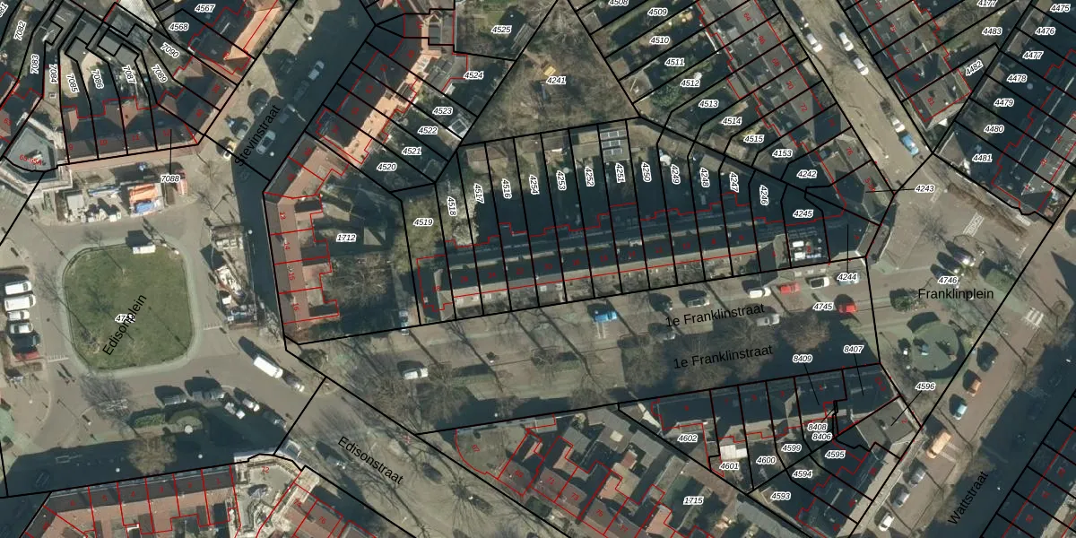 1e Franklinstraat 20 is gelegen op kadastraal perceel WSL01G4254. Deze kadastrale aanduiding is uniek en wordt gebruikt door het Kadaster om eigendomsrechten en andere zakelijke rechten vast te leggen. Het perceel maakt onderdeel uit van de kadastrale gemeente Woensel.